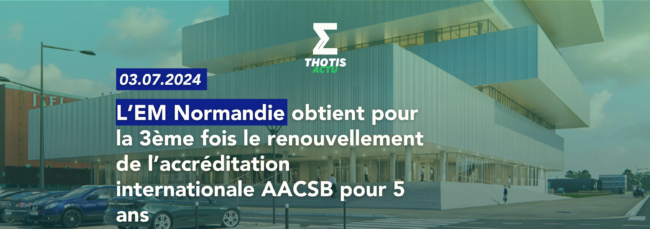 L’EM Normandie obtient pour la 3ème fois le renouvellement de l’accréditation internationale AACSB pour 5 ans. Celle-ci est octroyée à l’issue d’un audit rigoureux qui évalue l’excellence de l’école, la pertinence de sa mission et de sa stratégie, la qualification du corps professoral, la qualité des programmes et l’efficience de l’accompagnement des étudiants, mais aussi…