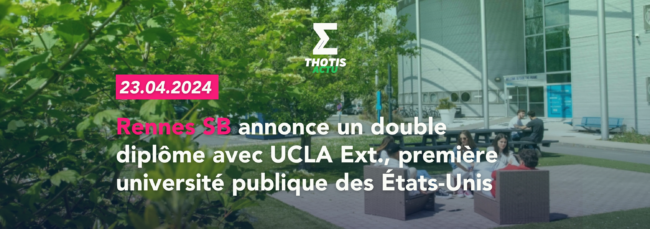 Rennes School of Business annonce la signature d’un accord de partenariat avec UCLA Ext. (Université de Californie à Los Angeles), meilleure université publique des Etats-Unis1. L’Ecole franchit ainsi une nouvelle étape en plongeant ses étudiants au cœur de son plan stratégique, résolument orienté vers l’innovation au service de l’impact positif. À lire aussi, sur Thotis…