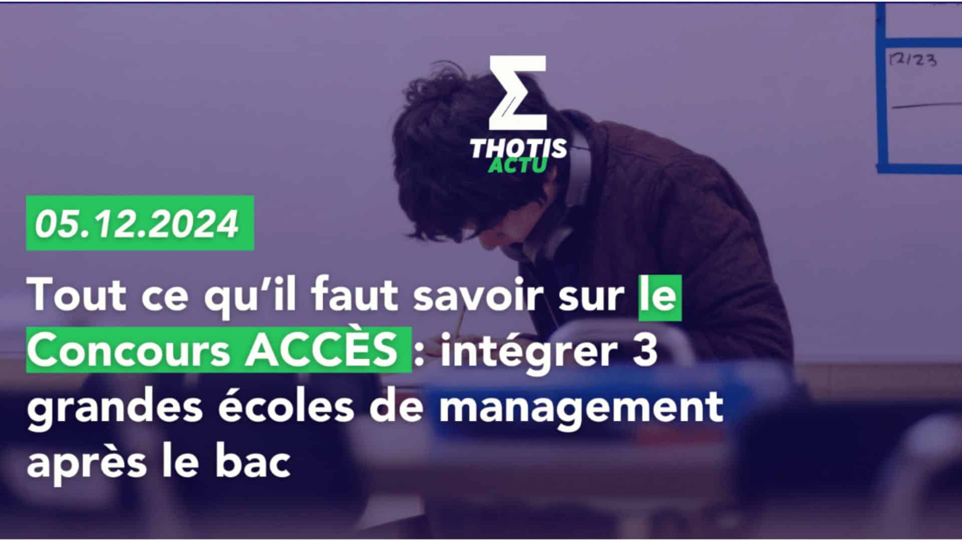 → Le Concours ACCÈS est un concours commun permettant d’intégrer 3 grandes écoles de commerce reconnues par l’État et délivrant le grade de Master. Chaque année, il sélectionne des candidats motivés et ambitieux souhaitant se former au management, au marketing, à la finance ou à l’entrepreneuriat au sein d’établissements d’excellence.